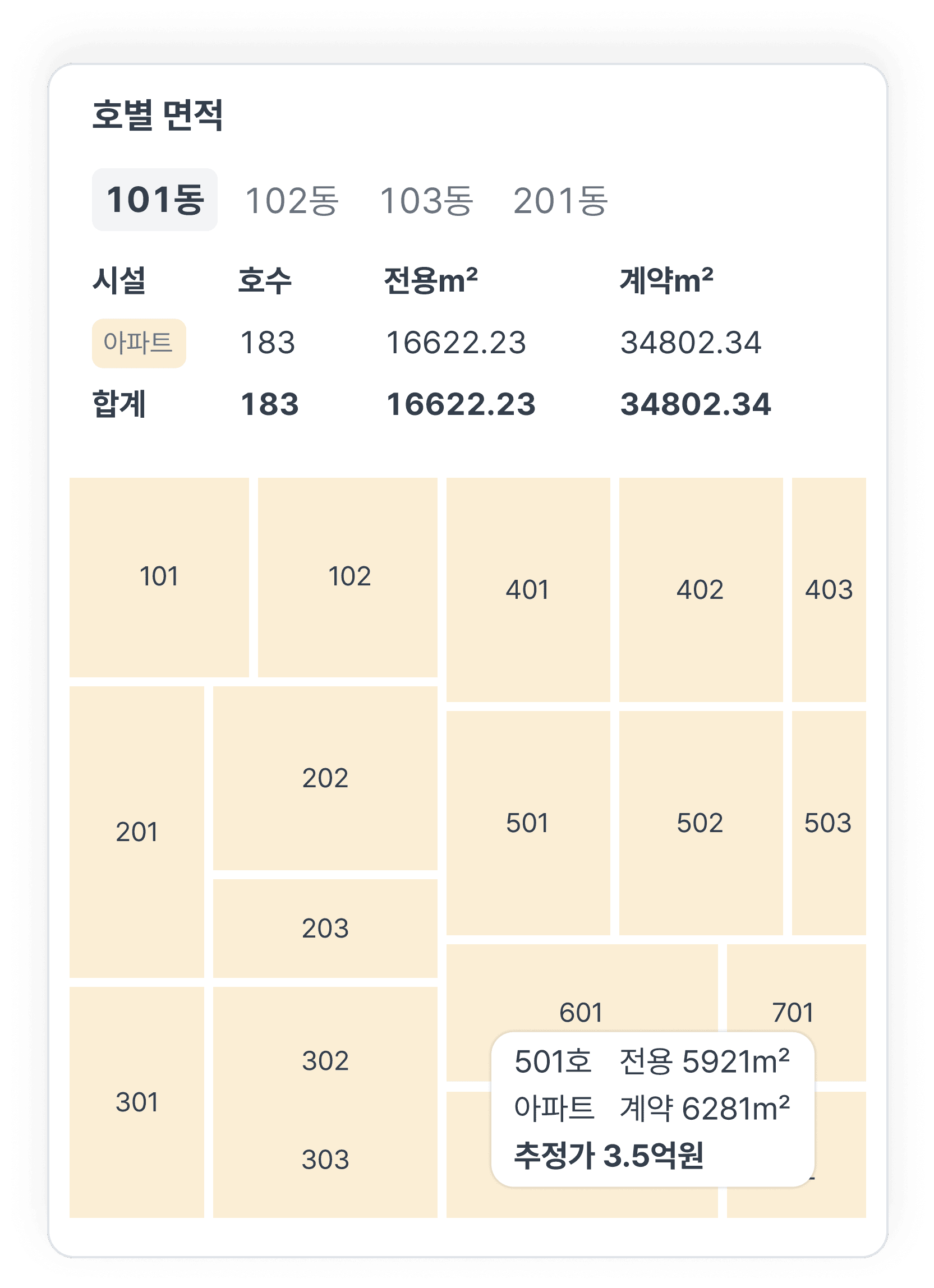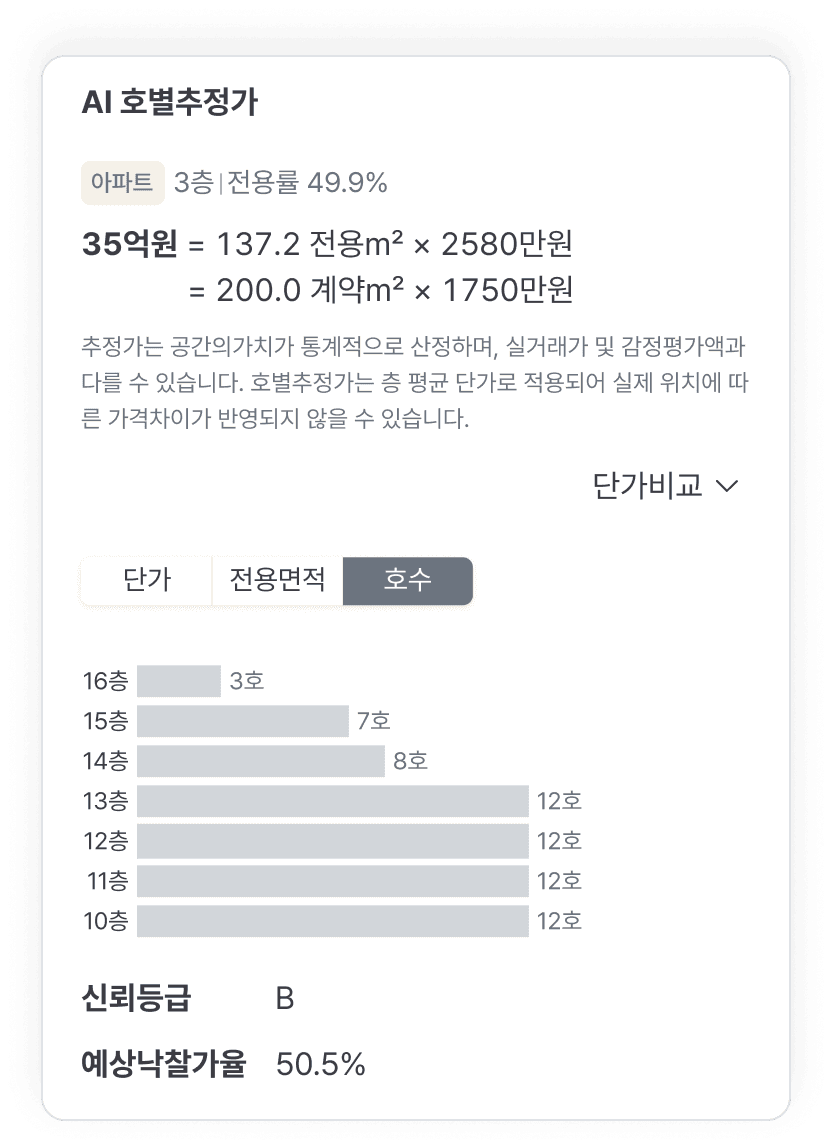 AVM(Automated Valuation Model, 자동가치산정모형)은 부동산의 시장가치를 추정하기 위해 데이터베이스와 연결된 알고리즘을 활용하는 시스템입니다. 다양한 부동산 AI 프레임워크를 통해 복잡한 부동산 특성을 정량화하고 시뮬레이션하여, 정확한 가치 예측을 수행합니다. 용도, 소유방식, 규모, 부대설비, 공용부, 접근성, 집적도, 규제 등 여러 계층으로 복잡하게 얽힌 속성을 다계층 알고리즘으로 재구조화하여 매월 AI 기반 추정가를 산정하고 이를 배포합니다.